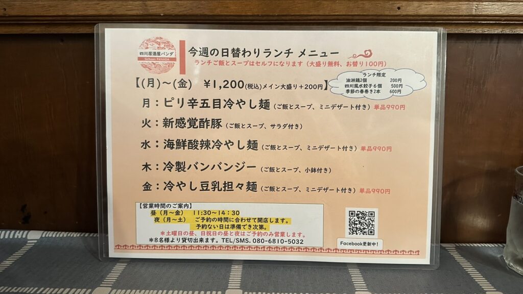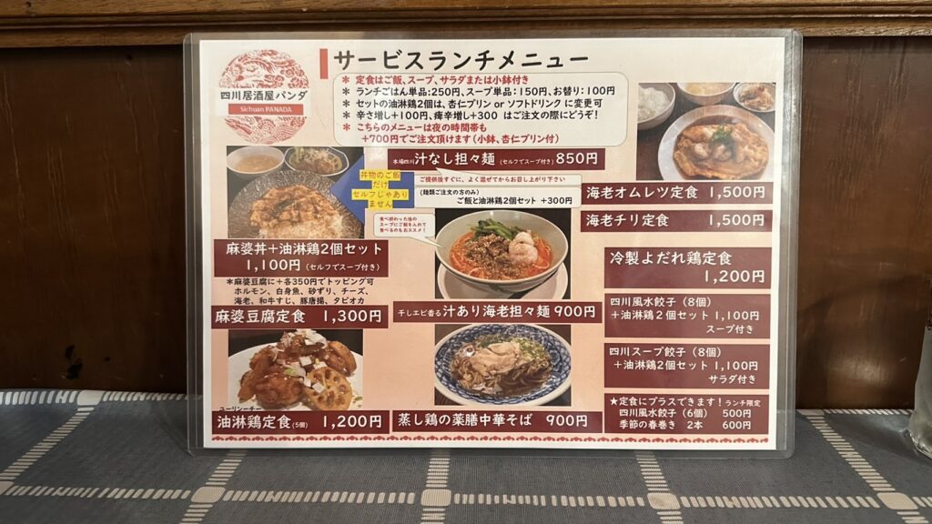 麻婆豆腐のほかにも油淋鶏や汁あり担々麺、四川スープ餃子など魅力的なメニューがいっぱい。