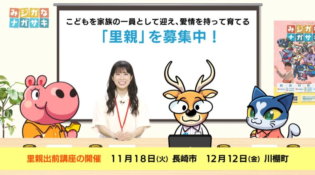 11月18日(火)に長崎市、12月12日(金)に川棚町で「里親出前講座」を開催します。