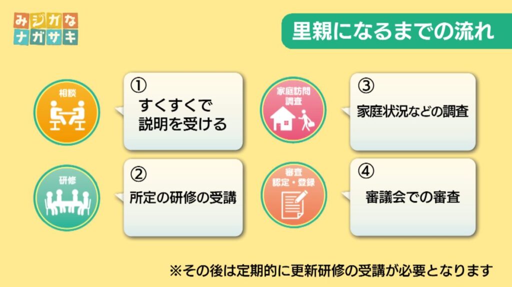 田中さん「その後、長崎県福祉保健審議会で審査が行われ、認定されると里親になることができます。里親になった後も、定期的に更新研修の受講が必要です」
