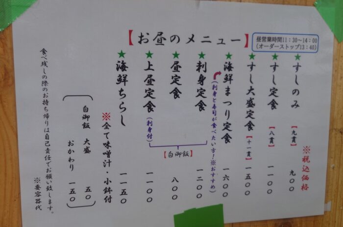 営業時間などの情報も外に掲示されているので、待っている間に一読しておくと良さそうです。