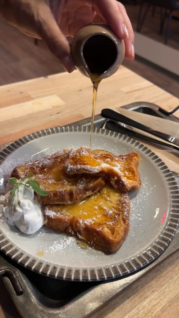 ほどよい甘さのメープルソースがよく合い、軽めのランチやおやつにもぴったり。