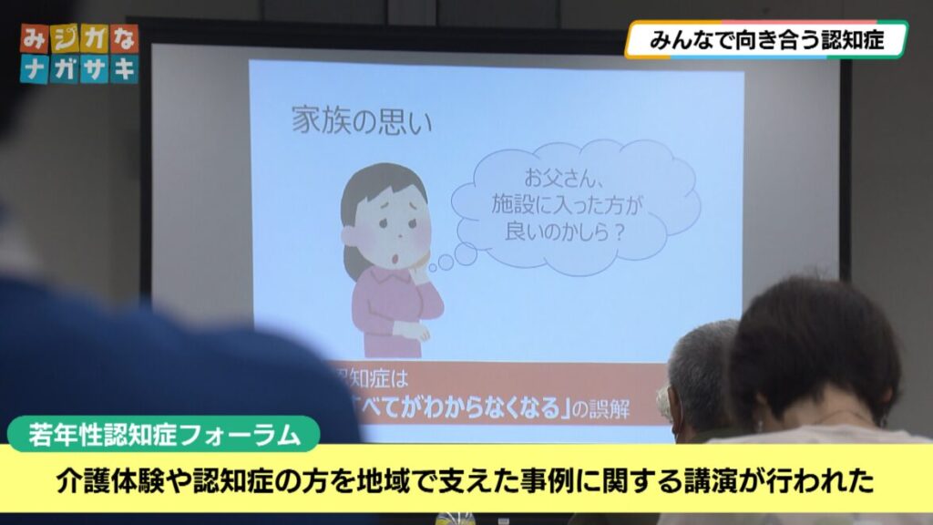 長崎県庁で開催された若年性認知症フォーラムでは、介護体験や認知症の方を地域で支えた事例に関する講演が行われました。
