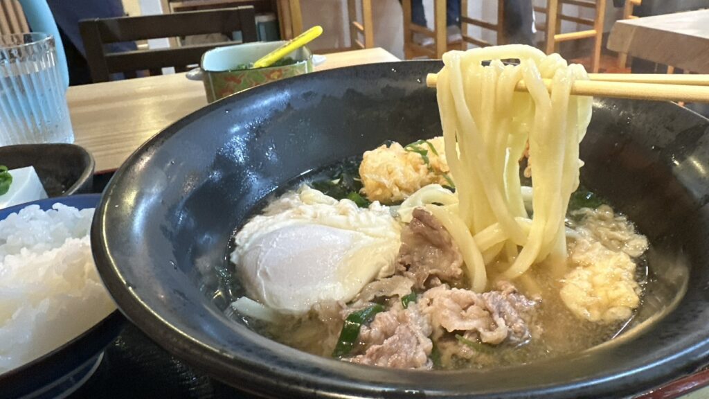 うどんはやわらかめで、口に含むとつるりとなめらか。