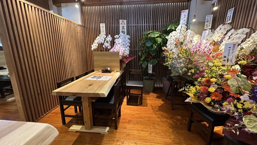 オープン初日にはたくさんの祝花が並び、店内は明るく賑やかな雰囲気でした。