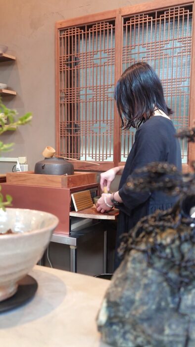 店主の佐藤さんは、茶道歴20年。丁寧に点ててくださいます。