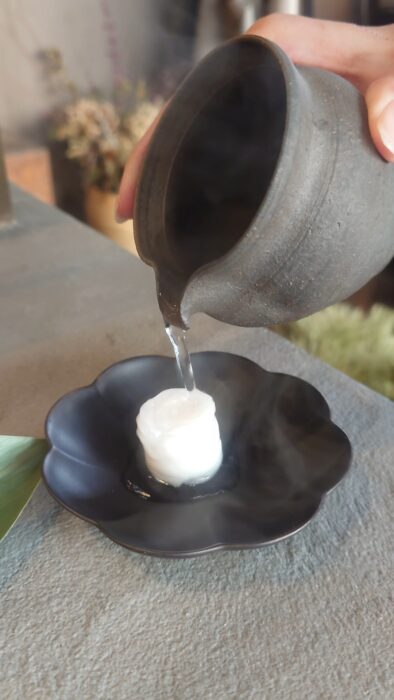 セットが提供された際には、おしぼりを画像のようにお湯をかけて提供。