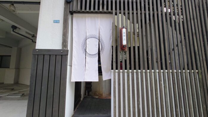 お店は二階にあるので、暖簾(のれん)をくぐって階段を上ります。※雨の日は暖簾をしまっているそうです。看板を目印にしてください。