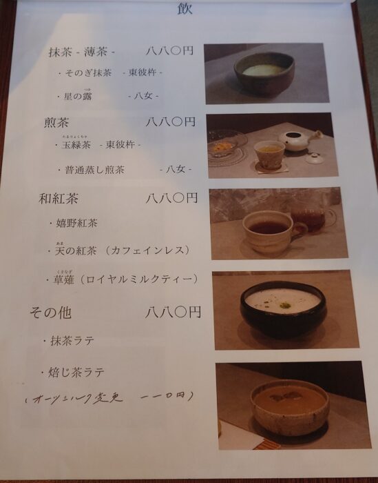 セット以外のメニューは画像の通りです。個人的には和紅茶が気になりますね。