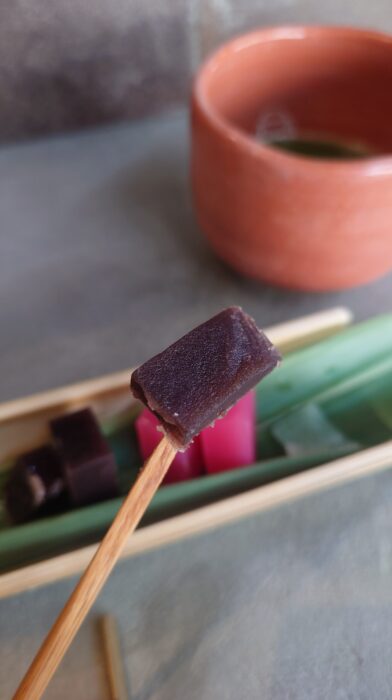 羊羹は、東島製菓さんのものです。上品なあんこの甘味が、季節の和菓子とはまた違った味わいとなっています。