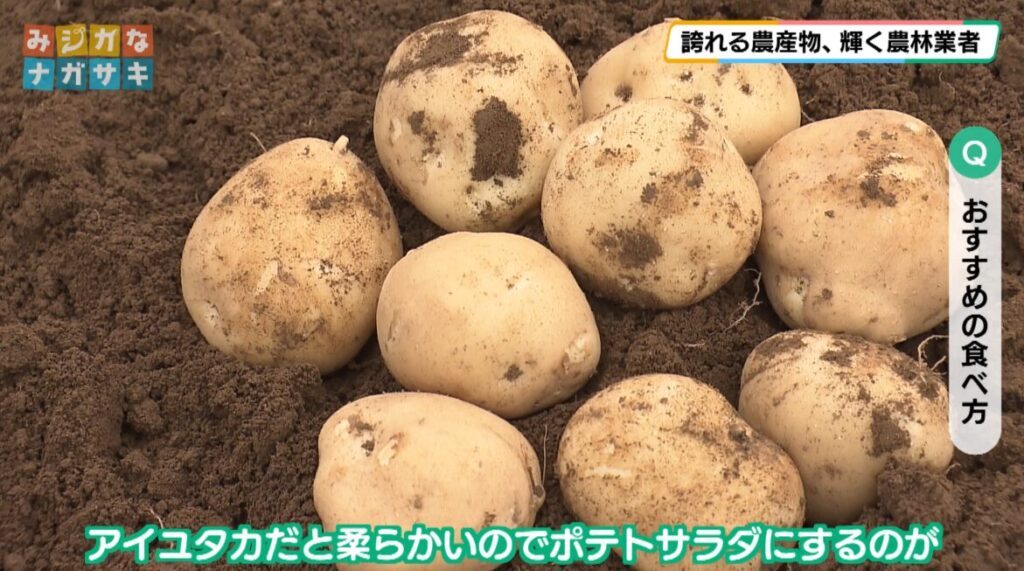 栄田真知子さん「今の時期だと丸いじゃがいもができるので、ニシユタカだと少し硬めなので煮物やカレーにして、アイユタカだと柔らかいのでポテトサラダにするのが一番おいしいと思います」