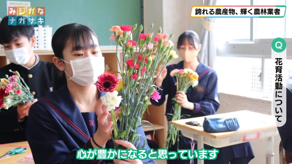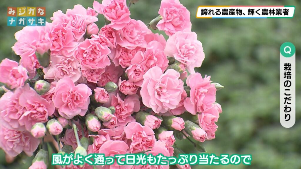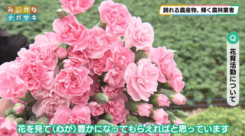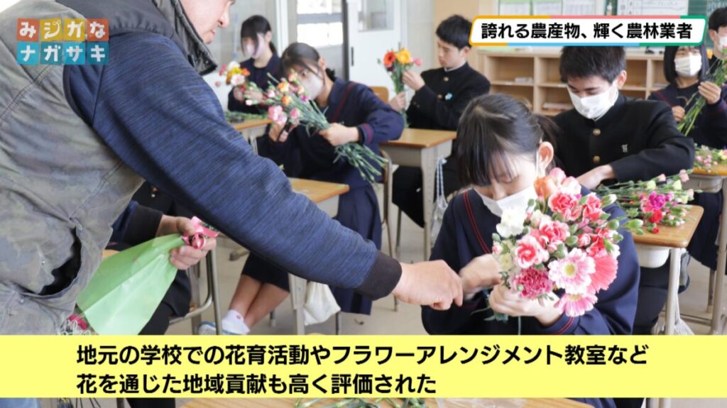 高品質な切り花生産に加えて、地元の学校での花育活動やフラワーアレンジメント教室を開くなど、花を通じた地域貢献も高く評価され、農林水産大臣賞及び長崎県知事賞を受賞しました。