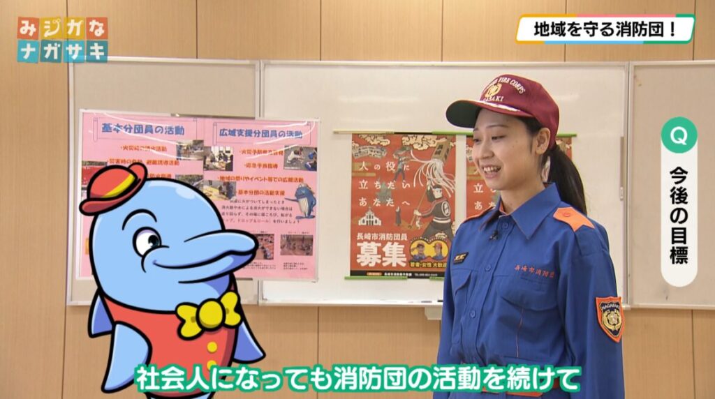西村さん「社会人になっても消防団の活動を続けて、火事などの災害が減るようにがんばりたいです」