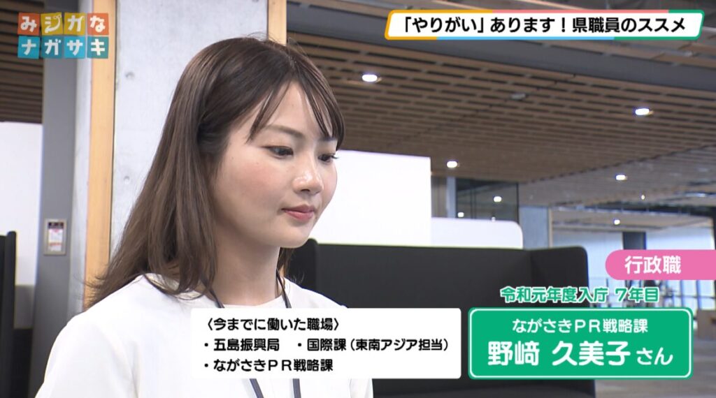 野﨑さん「今後は行政職として幅広い仕事に挑戦しながら、もっと多くの方に長崎県を好きになってもらえるようがんばりたいです」