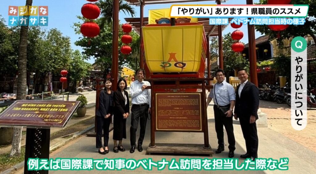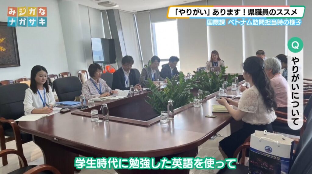 野﨑さん「例えば国際課で知事のベトナム訪問を担当した際など、学生時代に勉強した英語を使って、現地の自治体の方と何度も調整したので、訪問の行程が一つ一つ終わるたびに『自分の仕事が両地域の交流に役立っているんだな』と実感できて、すごく達成感がありました」