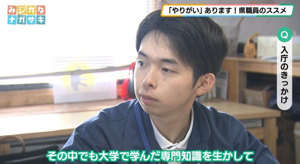 迎さん「県外の大学に進学しましたが、やっぱり生まれ育った長崎県に貢献したいという思いがあり、入庁を決めました」