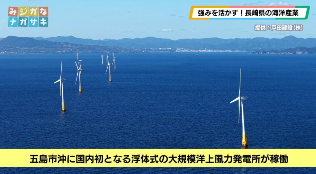 2026年1月、五島市沖では、風車を海に浮かべる「浮体式」として、国内初となる大規模洋上風力発電所が稼働しました。