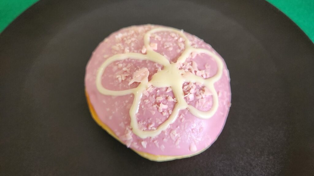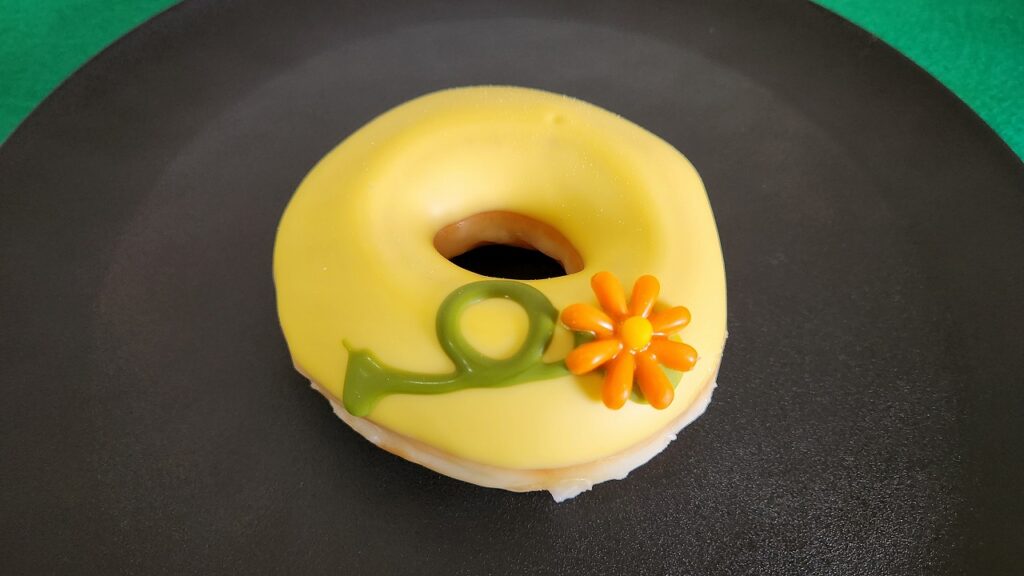 カスタード風味でコーティングしたリングに、オレンジ色の小さな花が咲きました。