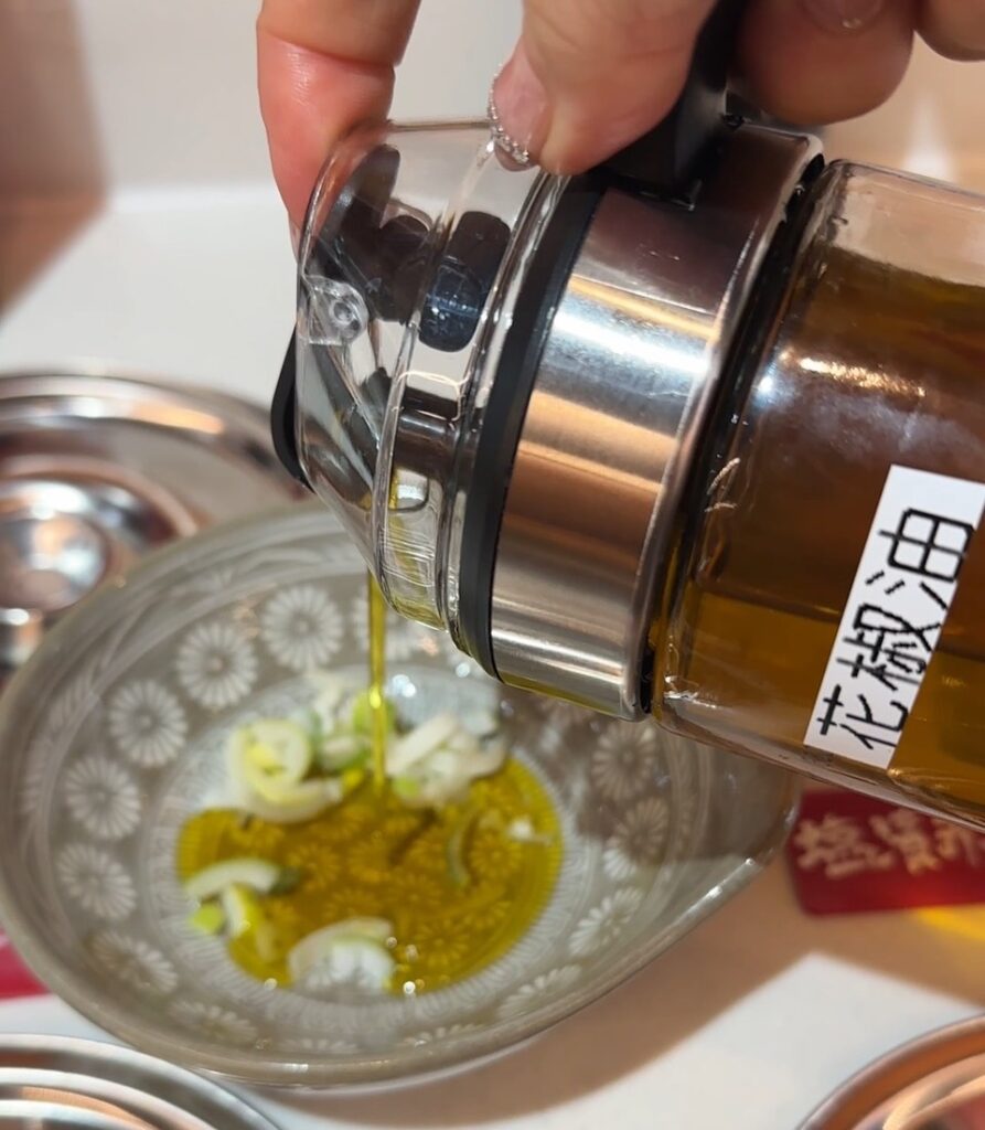 花椒油、ラー油、にんにく、ねぎなどが用意されていて、自分好みに味変できます。