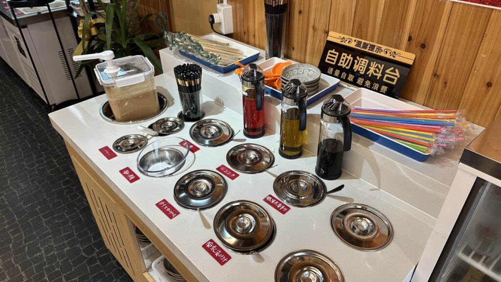 辛さを足したかったり、カスタマイズしたい場合は、調味料コーナーを利用しましょう!