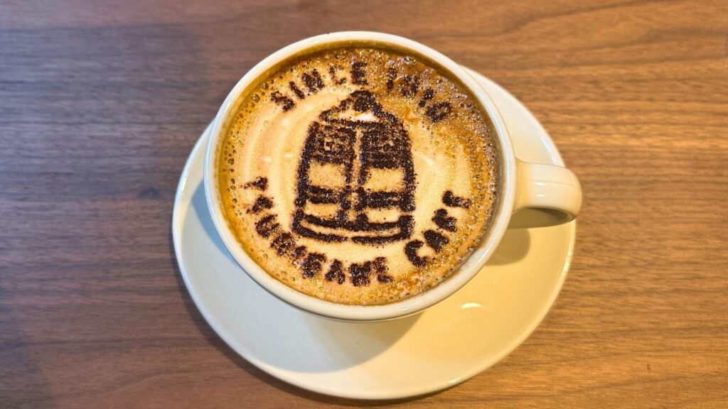 カフェのロゴマーク「つりがね」と、中華街を象徴するアイコンの一つ「ランタン」の2種類のラテアートがありました。